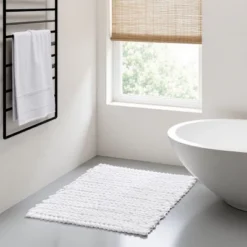 SEVOBAL Bathroom Rugs Bath Mat Rug Home Decor Carpet Shower Mat Home Decor Chenille Chain Stitch For Shower Room Bathroom Home, White, 24″*17″*0.5″