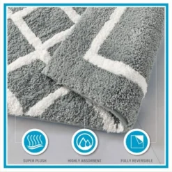 SEVOBAL Bathroom Rugs Bath Mat Rug Home Decor Carpet Shower Mat Home Decor Double Pattern For Shower Room Bathroom Home, Grey, 34″*21″*1.25″