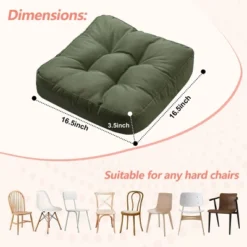 SEVOBAL 2Pack Square Seat Cushions With Premium Soft Cotton Filling, Non-Slip Bottom Durable Chair Pads For Dining Room, Green, 17.8″*17.8″*4.4″
