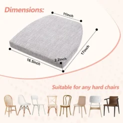 SEVOBAL 2Pack Seat Cushions With Premium Soft Cotton Filling, Non-Slip Bottom, Comfortable Durable Chair Pads For Living Room, Gray, 17″*16.5″*2.2″