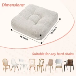 SEVOBAL 2Pack Square Seat Cushions With Premium Soft Cotton Filling, Non-Slip Bottom Durable Chair Pads For Dining Room, Beige, 17.8″*17.8″*4.4″