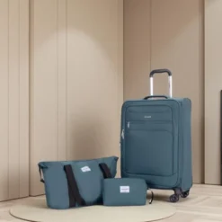 SEVOBAL Luggage Softshell Suitcase Set With Spinner Wheels Alloy Zipper And Travel Bag For Easy Travel, Green, 21.24″*13.74″*8.42″