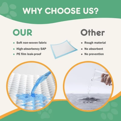 Introducing the ultimate in pet care technology, SEVOBAL training pads that outperform ordinary puppy training pads. Engineered with a superior absorbency system, these training pads feature a quick-drying surface that instantly neutralizes liquids, and a special deodorizer that eliminates odors. Leak protection includes reinforced side rails to prevent leaks even in the worst accidents, and a non-slip bottom for a secure hold.