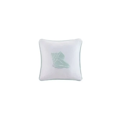 - Coastal Inspired Design: Features exquisite conch shell embroidery in aqua thread on a crisp ivory cotton jacquard background, accented with coordinating aqua piping. This pillow beautifully captures the serene essence of seaside living.