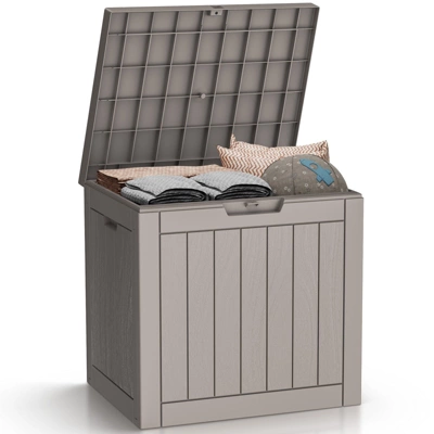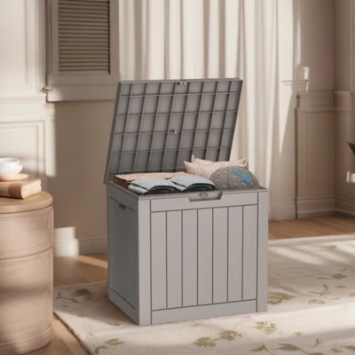 Enhance your outdoor living space with our Beige 30-Gallon Outdoor Deck Box. It’s perfect for storing cushions, garden tools, pool accessories, toys, and more. Easy-to-assemble panels (lid, front, rear, bottom, and two sides) make setup quick and hassle-free. The sleek beige color and wood-like texture blend seamlessly with any outdoor decor, whether placed on your patio, deck, or in your garden. This versatile box can also serve as a bench or side table, providing extra seating and utility.