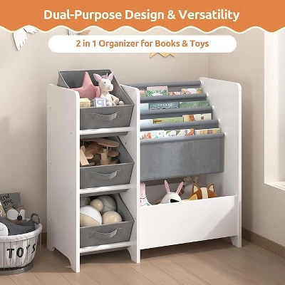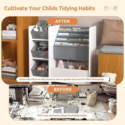 - Storage compartments can be used simultaneously to store and display reading books and other books, as well as their favorite toys and school supplies.