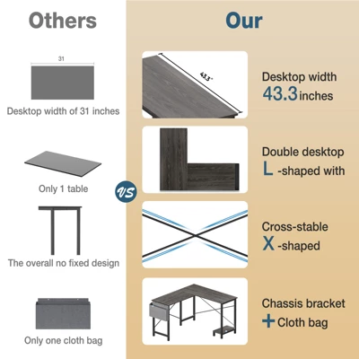 Sevobal desk offers you a unique office experience. Our desks are designed with corners to increase your usable space. The L-shaped combination enables you to study and work on one side and place your office supplies on the other. The countertop made of high-quality materials has the characteristic of wear resistance, and the X-shaped frame structure enhances better support.