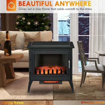 SEVOBAL Fireplace Insert Heater Mantel 3D Flame Quartz Fireplace Stove Bottom Air Outlet Fire Place Panoramic 3-Side View, Black, 28.25″*16.75″*24.5″