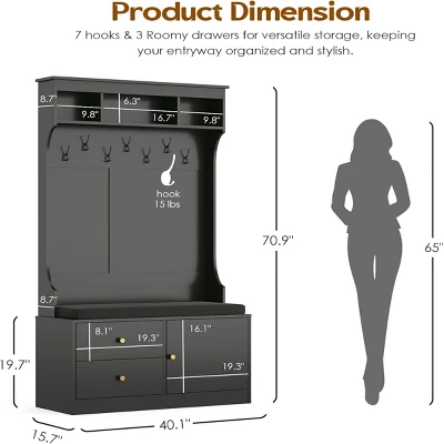 - Sturdy and Safe Construction: Built with high-quality materials and reinforced with anti-tip hardware, this hall tree remains stable even when fully loaded, ensuring safety for your family.