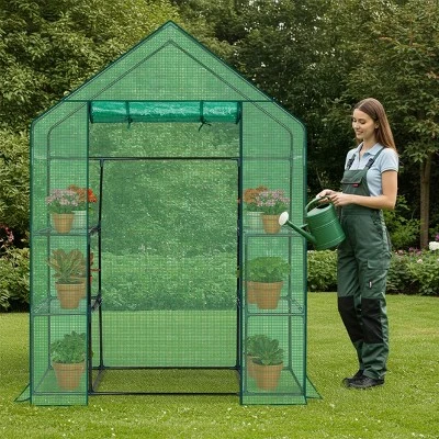 SEVOBAL Greenhouse Outdoor Durable PE Plant Green House For Frost Protection Shelf Clips Roll-up Zipper Door Walk-in For Planter, Green, 99″*37″*10″