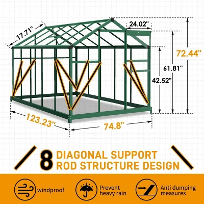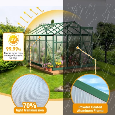 SEVOBAL greenhouse ultra-clear polycarbonate panels offer superior light transmission while providing insulation against temperature extremes. The aircraft-grade aluminum frame features reinforced joints and corrosion-resistant finishes for lasting durability. Whether extending your growing season, protecting delicate ornamentals, or starting seedlings early, this structure delivers laboratory-quality environmental control in a user-friendly package.