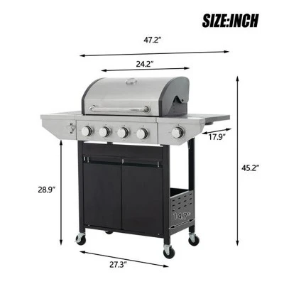- Smart Cooking Convenience: Includes a practical side burner for sauces/sides, one-touch electronic ignition, and four heavy-duty wheels, 2 locking, for easy repositioning. The spacious 44 inch main cabinet provides ample workspace for grilling tools.