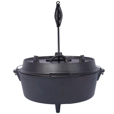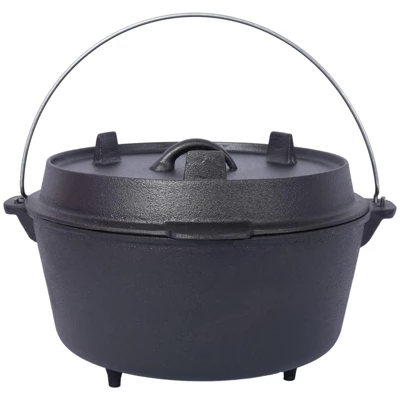 - Versatile 2 in 1 Lid Design: The lid includes built in legs and can double as a skillet or griddle allowing flexible cooking options over open fires without the need for additional cookware.