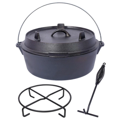 SEVOBAL heavy duty outdoor oven is crafted to handle tough conditions while ensuring dependable cooking results throughout your camping journeys. Its smart 2-in-1 lid includes built in legs and functions on its own as a skillet or griddle, offering flexible campfire cooking without extra pans. Designed with convenience in mind, it features a carry handle for transport and works with tripod setups. A lid lifter is also included to safely lift the lid when hot.