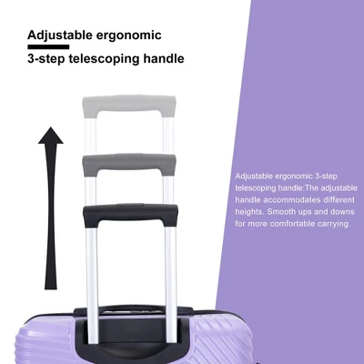 - Smart Ergonomic Handling System: Features a 3-stage telescoping pull rod that smoothly adjusts to heights from 38 inch-42 inch, accommodating travelers of all statures. The reinforced aluminum frame ensures wobble-free operation, while the cushioned top and side handles with premium soakers on 24 inch and 28 inch protect against abrasion and provide comfortable grip points.