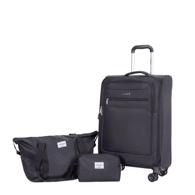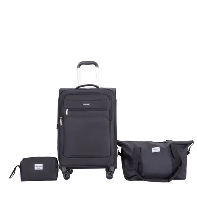 SEVOBAL Luggage 3-Piece Travel Set With Spinner Wheels, Lightweight Carry-On Luggage With Toiletry Bag And Travel Backpack, Black, 21.24″*13.72″*8.5″