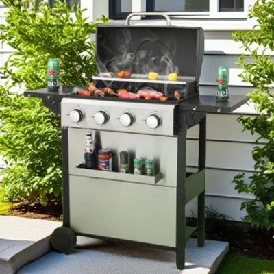 SEVOBAL versatile 4-burner propane grill combines power with practical features for effortless outdoor cooking. The dual burner system delivers professional-level heat distribution while the foldable side tables maximize workspace. Durable enameled cooking grids ensure even heat for perfect grilling results every time. With convenient push-button ignition and smooth-rolling wheels, this grill makes backyard barbecues easier and more enjoyable.