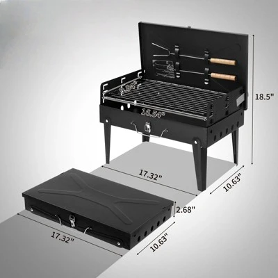 SEVOBAL professional-grade square charcoal grill combines robust construction with intelligent design for exceptional outdoor cooking performance. The adjustable height system offers precise temperature control while the wind-resistant lid ensures consistent results in any weather condition. Built from premium materials that withstand frequent use, it transforms from a full-size cooking station to a compact travel size in seconds.