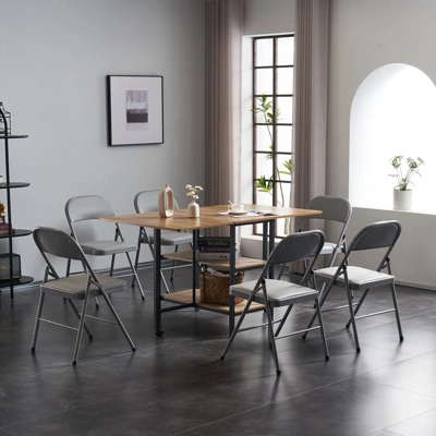 Add comfort and practicality to your space with this Foldable Soft Cushion Chair Set from Sevobal. Built with a reinforced steel frame and cushioned with resilient sponge under a PVC seat and backrest this chair ensures durability and relaxation. Its foldable design saves space while plastic sleeves protect floors and offer stability. Perfect for living rooms receptions exhibitions or any area needing extra seating with ease.