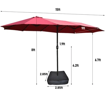 - This patio umbrella features a double-sided design, which gives you maximum shelter that brings you double shades for your outside enjoyment.