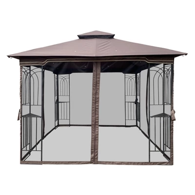 Sevobal Patio Umbrellas Outdoor Patio Gazebo Canopy Tent With Ventilated Double Roof And Mosquito Net, Suitable For Lawn, Brown, 117″*117″*108.7″