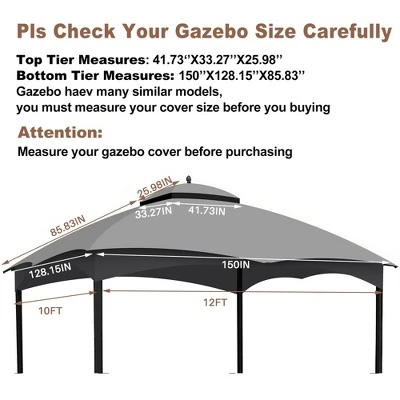 Sevobal Patio Umbrellas Replacement Canopy Top, Heavy Duty Gazebo Roof, Gazebo Top With Air Vent, Replacement Top Only, Gray, 150″*128.15″*33″