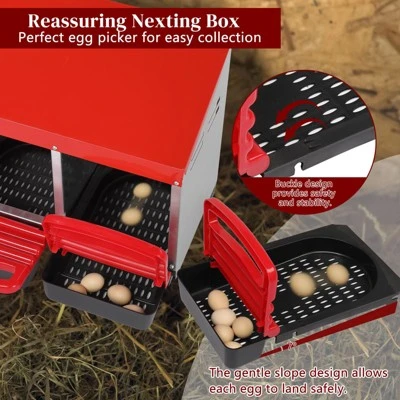 - Optimized Nesting Chambers: Each compartment features a protective front barrier to contain bedding, while the generously sized interiors comfortably fit various poultry breeds from bantam chickens to medium ducks.