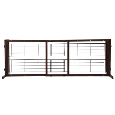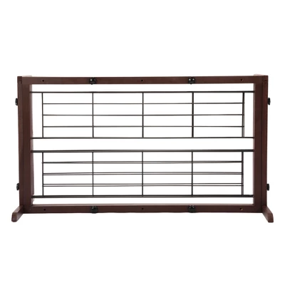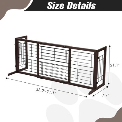 SEVOBAL makes pet parenting easier with this wooden pet gate that keeps furry friends safe while complementing your home decor. Crafted from solid wood and reinforced wire mesh, this gate offers durability and stability for daily use. The adjustable width fits openings from 38 to 71 inches, perfect for doorways and staircases. Requires no tools for quick setup and can be easily moved as needed. Provides secure containment while allowing visibility and airflow through the mesh panels.