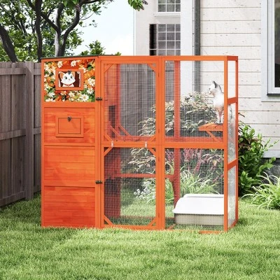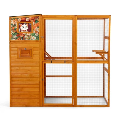 SEVOBAL gives your feline explorer the ultimate outdoor playground with this spacious cat enclosure. The sturdy spruce wood frame and galvanized mesh provide all weather protection while allowing fresh air flow. Features two cozy resting rooms and multiple platforms for climbing and lounging. Can be window mounted or freestanding on patios and decks. Easy to assemble with clear instructions and adds style to outdoor spaces.