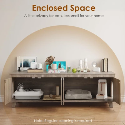 - More Privacy, Less Smell: The hidden cat litter box creates an enclosed space for cats,without stinky smells and cat litter scattered around.It can also serve as a table or a stand for other household