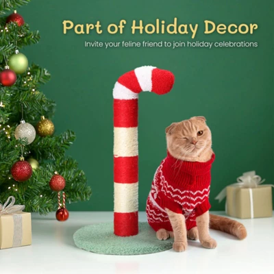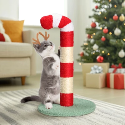 Delight your feline friend with this merry Christmas-themed scratching post that blends seamlessly with your holiday decor. The candy cane design features alternating plush and sisal surfaces that appeal to cats’ natural instincts while adding festive charm to your home. Perfect for scratching, stretching and playing, this sturdy scratcher provides endless entertainment while looking cheerful in any room.