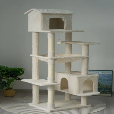SEVOBAL Pet Tower 63-Inch Multi-Level Cat Tree With Plush Perches, Scratching Posts, Spacious For Play, Relaxation, Beige, 22.44″*11.42″*18.5″