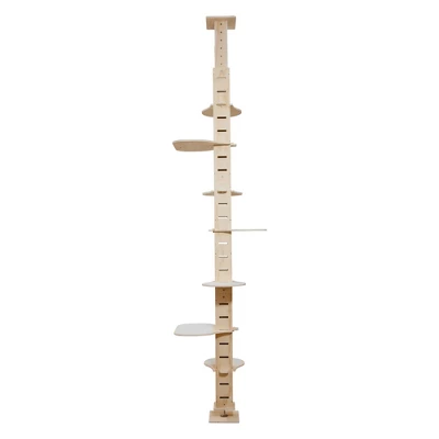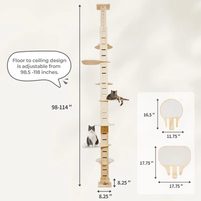 - Adjustable Floor-to-ceiling Cat Tree: This floor-to-ceiling cat tree with adjustable height design allows this cat tree to accommodate various room ceilings without any obstacles. Natural wood grain silhouette matches many home furniture.