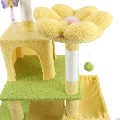 SEVOBAL Pet Tower Floral Cat Tree With Spacious Condo And Hammock, Multi-Level Playground For All Age Cats Playing, Sleeping, Yellow, 20″*20″*14.4″