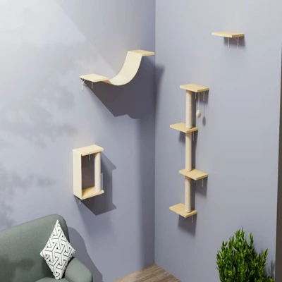 - Complete Vertical Play System: This 4-piece set transforms your walls into an exciting feline playground, featuring a cozy cat bridge, stepping platforms, scratching surfaces, and a compact cat tree. The interconnected design creates stimulating pathways for climbing, jumping, and surveying their domain from above.