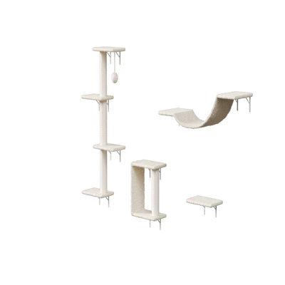 - Complete Vertical Play System: This 4-piece set transforms your walls into an exciting feline playground, featuring a cozy cat bridge, stepping platforms, scratching surfaces, and a compact cat tree. The interconnected design creates stimulating pathways for climbing, jumping, and surveying their domain from above.