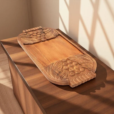SEVOBAL Serving Platters Handmade Teak Wood Cheese And Bread Board With Asymmetrical Modern Design For Cakes, Appetizers, Brown, 29.5″*14″*1.5″