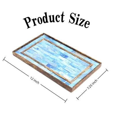 SEVOBAL Serving Platters Striped Wooden Large Rustic, Mango Wood Platters For Cakes, Appetizers, Desserts And Others, Blue, 12″*7.25″*0.8″