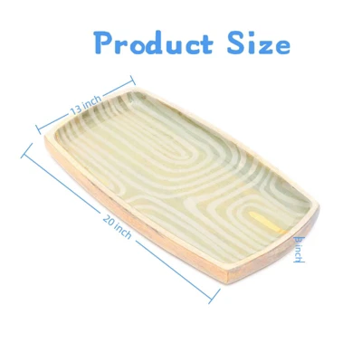 SEVOBAL Serving Platters Striped Wooden Large Rustic, Mango Wood Tray For Cakes, Appetizers, Desserts And Others, Beige, 14.96″*7.87″*0.98″