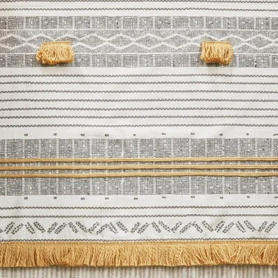 - Charming Tassel Pom Pom Detail: Features playful tassel pom pom accents along with a stylish cotton stripe print, adding a casual yet sophisticated touch to your bathroom decor.
