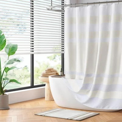 SEVOBAL Shower Curtain Water Repellent 3M Treatment With Waffle Weave Texture For Bathroom, Beige, 78″*72″*0.13″
