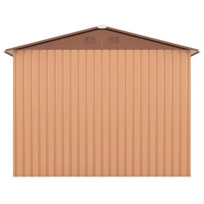 - The metal outdoor shed is made of high quality galvanized sheet and is rain and UV proof all year round. The bottom with four ground nails, can withstand all kinds of bad weather.