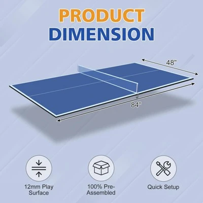 SEVOBAL Table Tennis Accessories bring the fun of ping pong to any table with this foldable conversion top. It comes with everything you need to get started, including a net and posts. The single sided design allows for solo play and easy storage in small spaces. The foldable top features a secure locking mechanism and foam pads to protect surfaces. Setup is a breeze with no tools required, making it perfect for spontaneous play anytime.